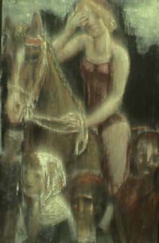 Circusvoostelling, 2 kanten geschilderd, olie op hout, 94 x 124 cm